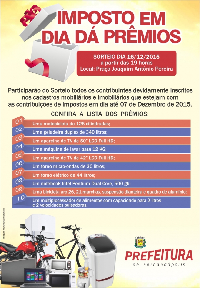 Segundo sorteio do “Imposto em Dia dá Prêmios” será no dia 16 de Dezembro