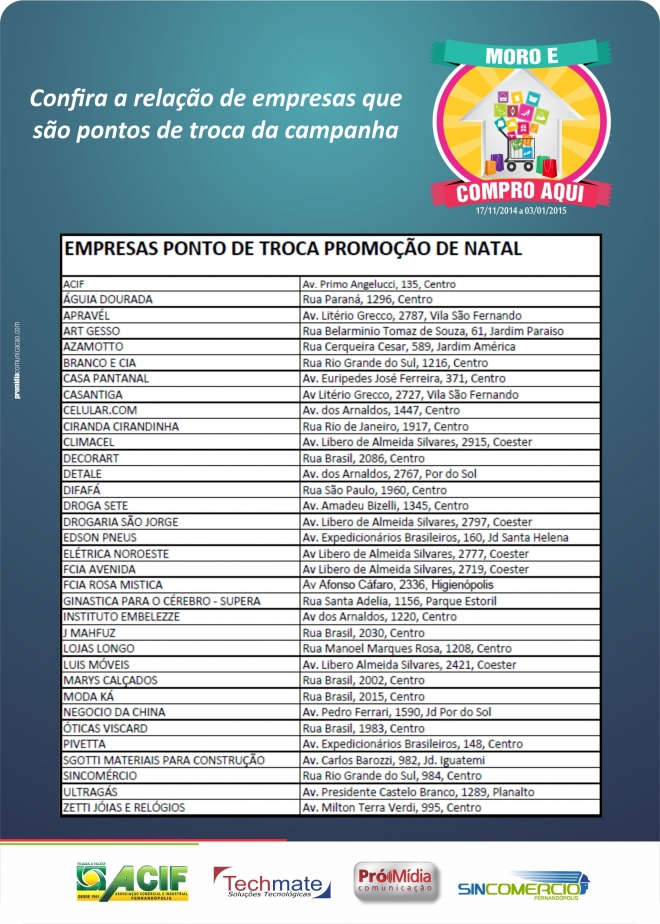 ACIF divulga a lista de pontos de troca da Campanha de Natal