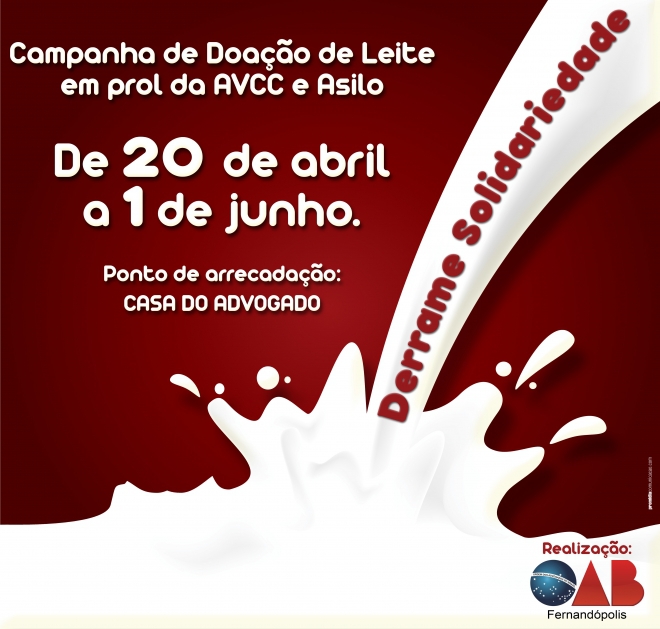OAB Fernandópolis lança campanha para arrecadação de leite