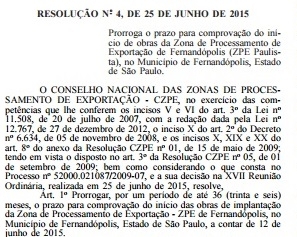 Resolução que prorroga prazo para implantação da ZPE é publicada