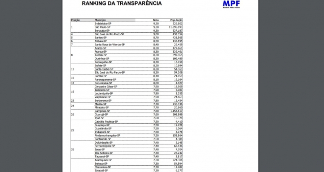 Fernandópolis é a 35º cidade mais transparente de SP e a 3ª da região, aponta MPF