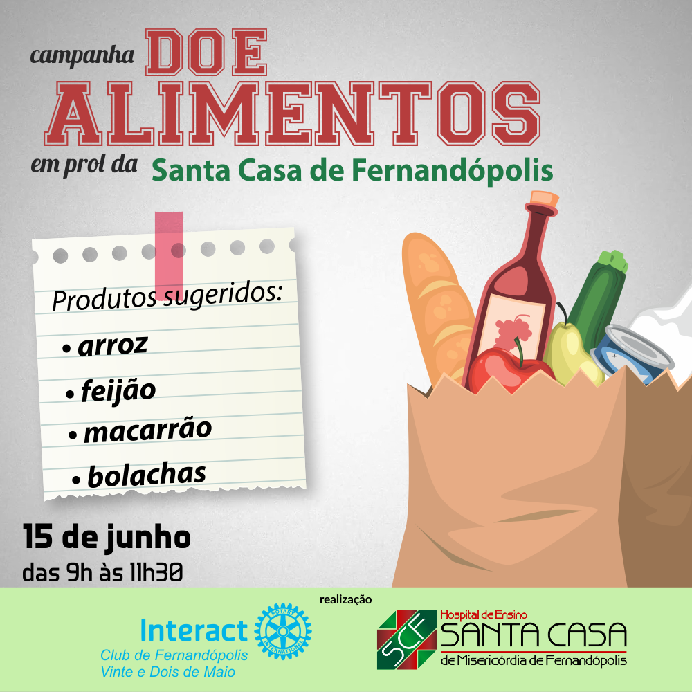 Interact Club e Santa Casa realizam campanha de alimentos neste sábado