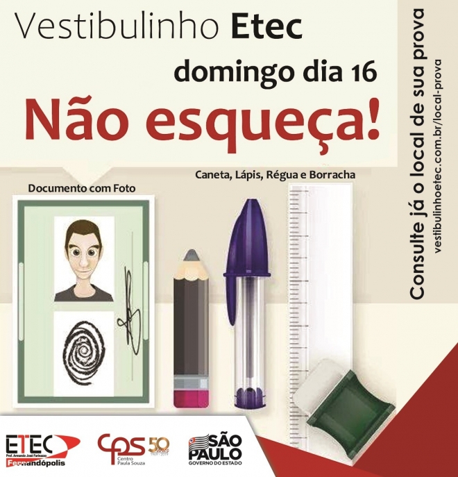 Etec divulga locais de prova do “Vestibulinho” de domingo