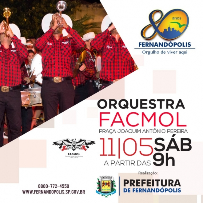 Orquestra Facmol abre agenda cultural dos 80 anos de Fernandópolis