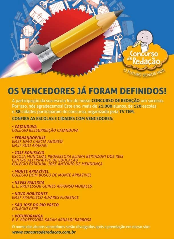 Escolas de Fernandópolis são destaques no Concurso de Redação da TV Tem