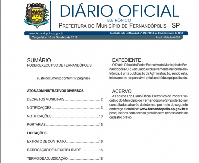 Prefeitura lança primeira edição do “Diário Eletrônico” de Fernandópolis