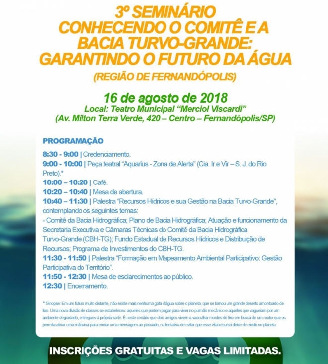 Fernandópolis sedia 3º Seminário ‘Conhecendo o Comitê e a Bacia Turvo-Grande’