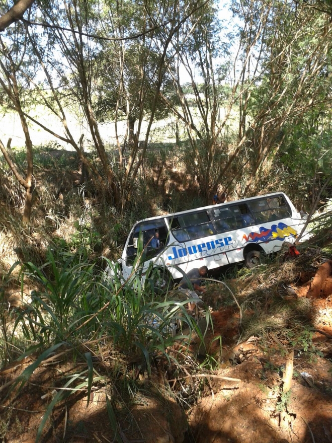 Motorista perde o controle e ônibus do transporte coletivo cai em córrego