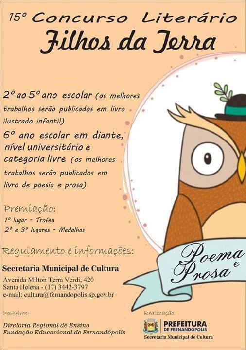 Prefeitura de Fernandópolis lança Concurso Literário "Filhos da Terra"