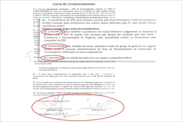ZPE: documento reconhecido em cartório apresenta indícios de pedido de propina no valor de R$ 13,5 milhões