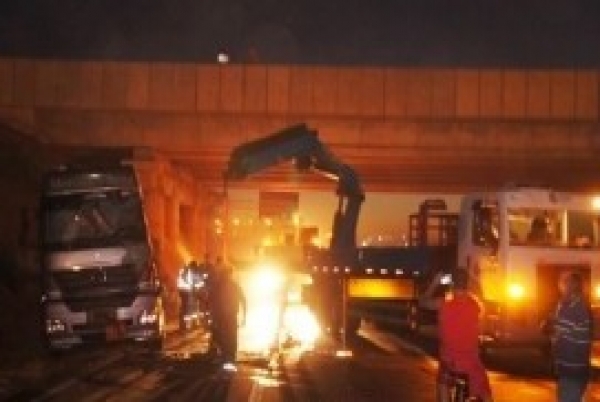 Carreta tombada é retirada e causa congestionamento
