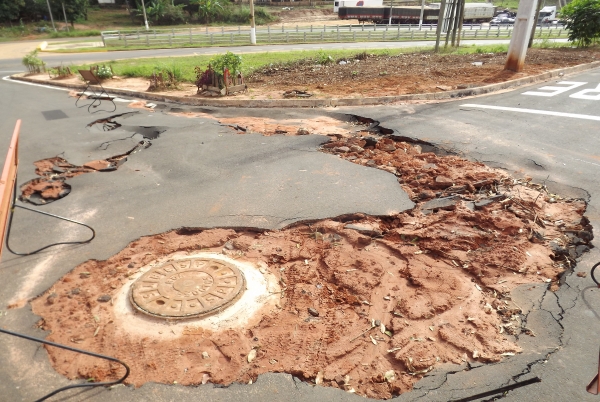 Cratera em rua paralela à Avenida Getúlio Vargas continua aberta