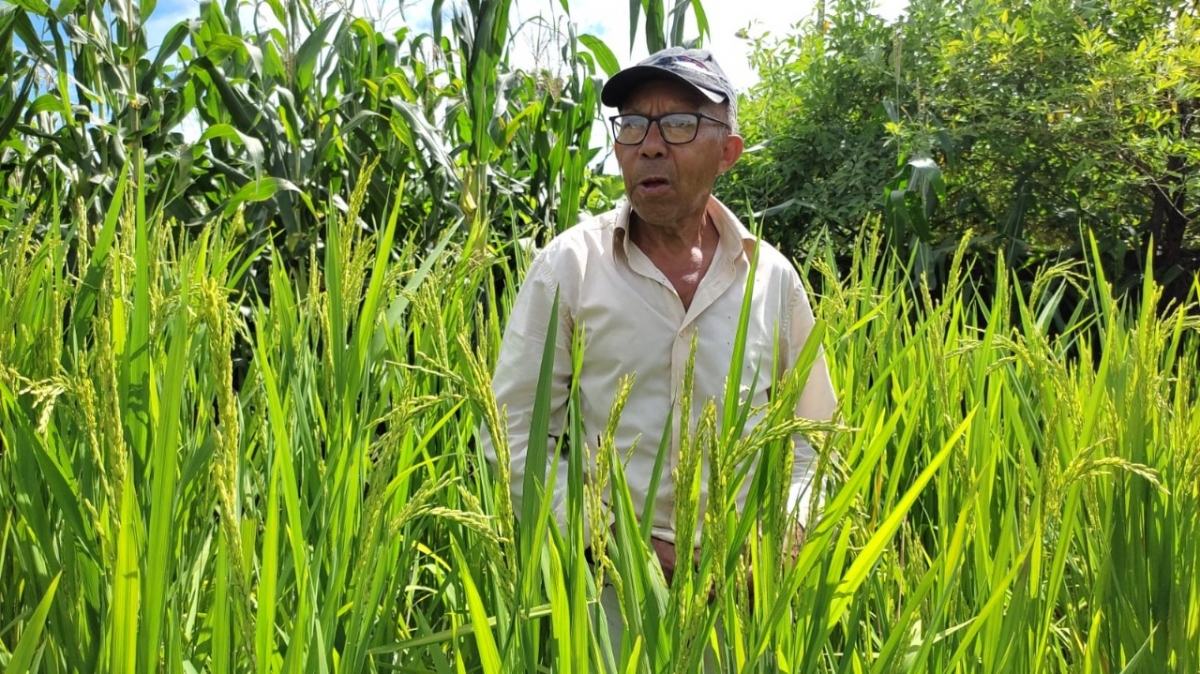 Aposentado cultiva área no centro da cidade e vai colher amendoim, feijão, milho e arroz