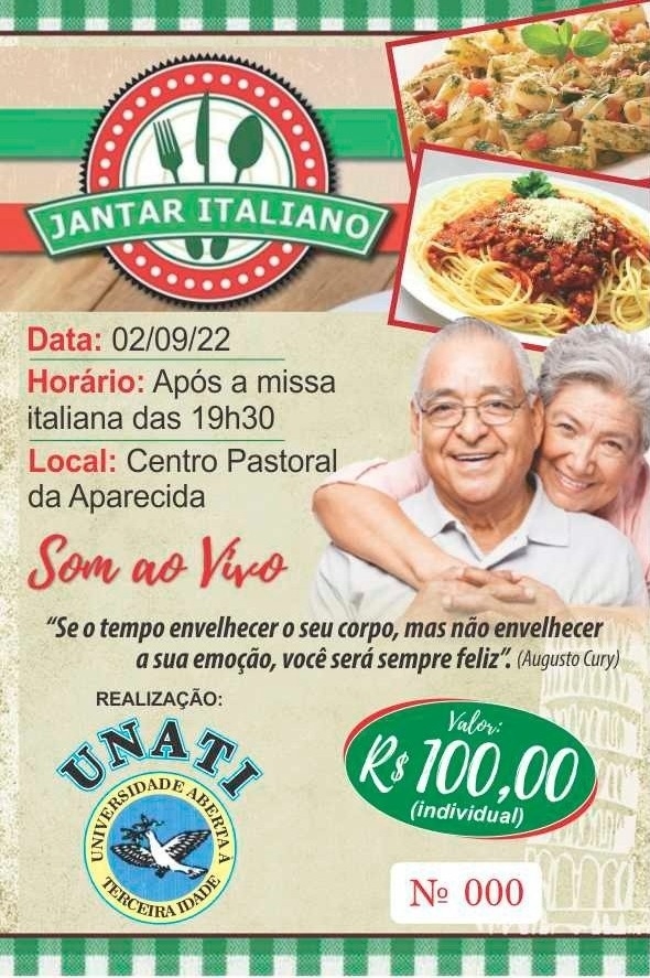 Unati realiza Missa e Jantar Italiano no mês de setembro