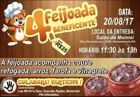 “Pelos e Patas” promove a 4ª Feijoada no dia 20