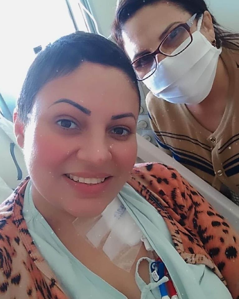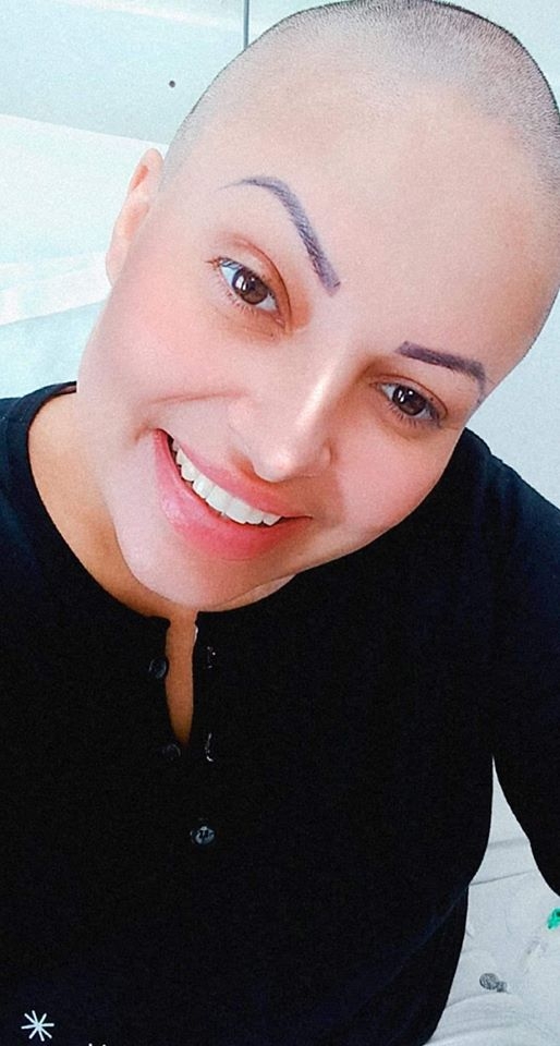 Careca, sem maquiagem e com um sorriso lindo no rosto