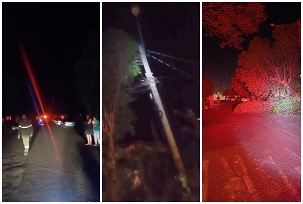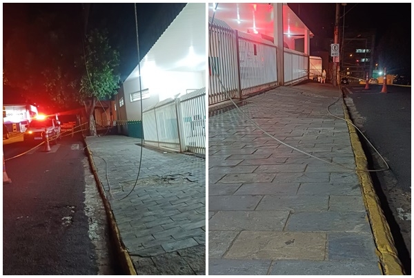 Vento forte rompe cabos de energia em frente ao pronto-socorro da Santa Casa e causa transtornos