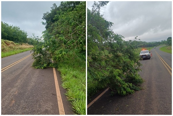 Ventania derruba árvore sobre a Rodovia Carlos Gandolfi