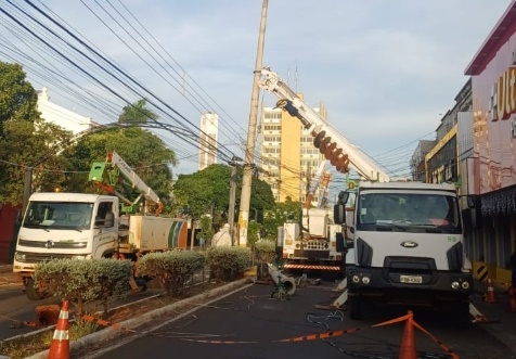 Troca de poste de energia que ameaçava cair mobiliza operação no centro da cidade