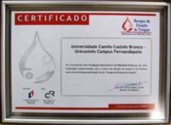 Unicastelo recebe reconhecimento do Hemocentro de Ribeirão Preto