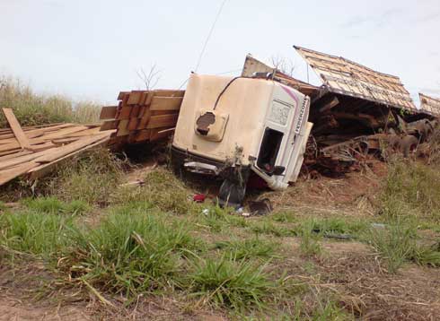 Choque entre carro e caminhão mata 1 e deixa 2 feridos