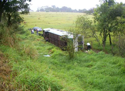 Ônibus com 26 universitários tomba em rodovia e deixa 1 aluno em estado grave