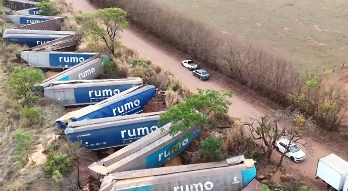 Rumo diz que ferrovia está operacional após acidente com descarrilamento de duas locomotivas e 14 vagões