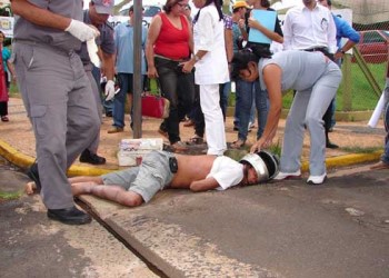Motociclista sofre traumatismo craniano e fratura na perna ao invadir sinal