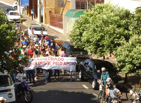 Funcionários do frigorífico fazem apitaço pelas ruas da cidade