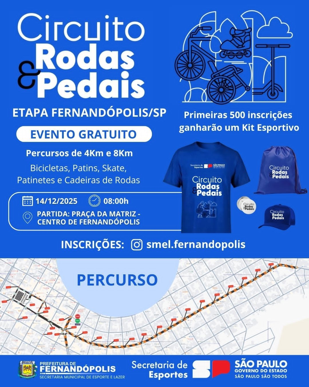 Fernandópolis promove “Circuito Rodas e Pedais 2025” com inscrições gratuitas e atividades inclusivas