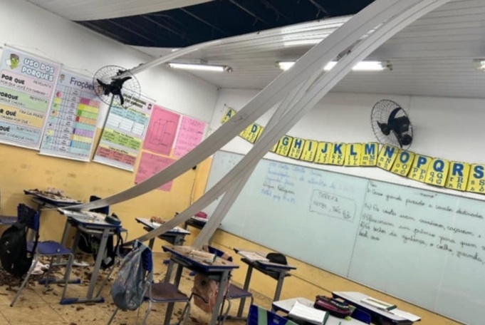 Forro de sala de aula na Escola Alberto Senra cede após chuva