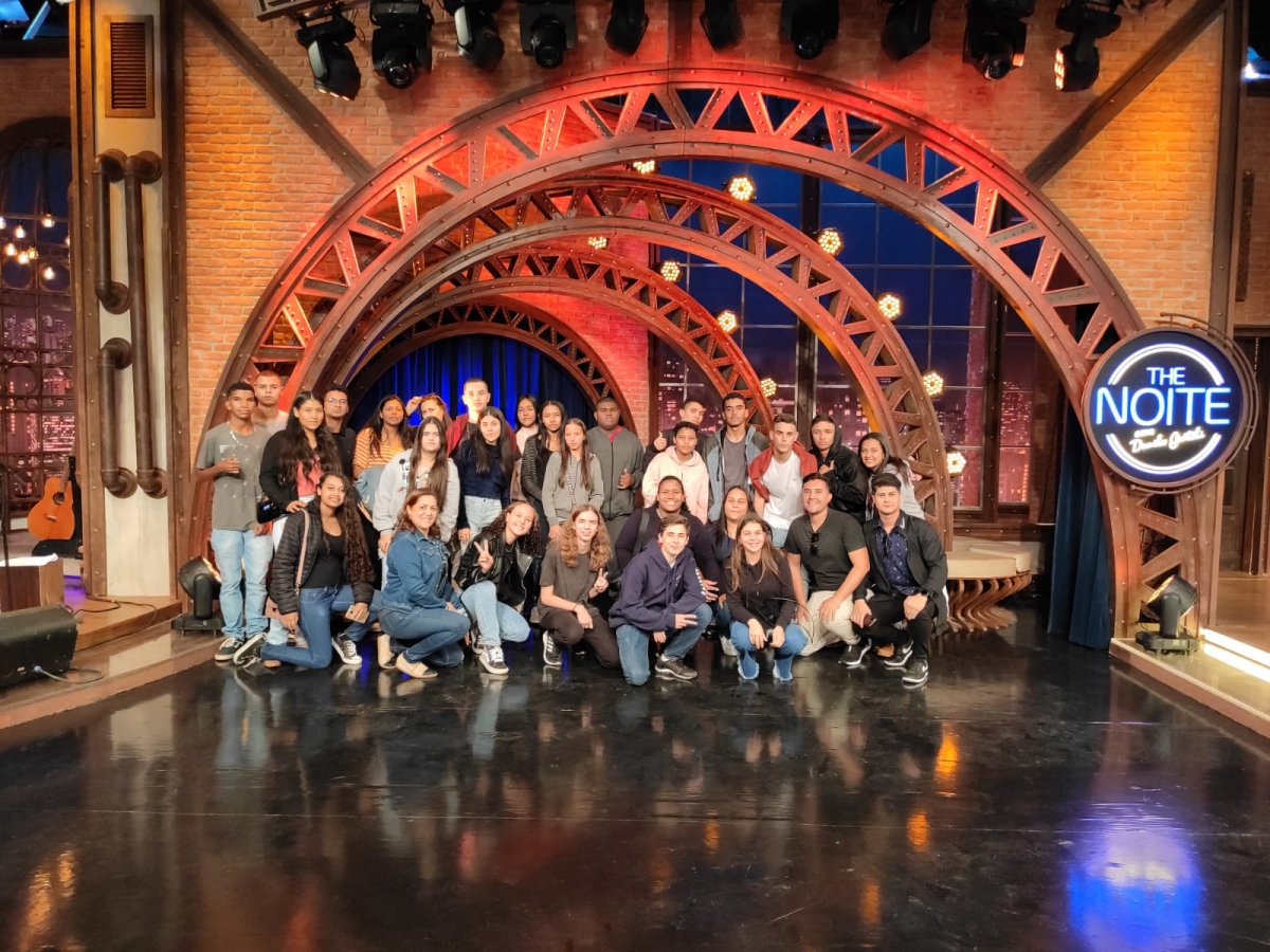 Alunos de Macedônia fazem tour na sede do SBT e participam da plateia do “The Noite”