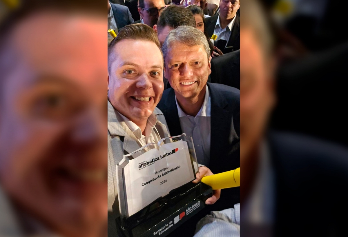 Prefeito de Macedônia recebe prêmio “Cidade Campeã da Alfabetização” das mãos do governador