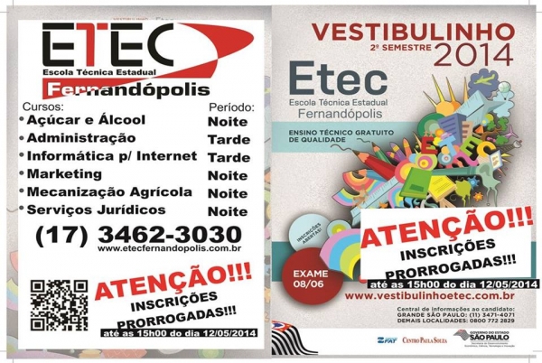 Etec prorroga período para inscrições do vestibulinho de inverno