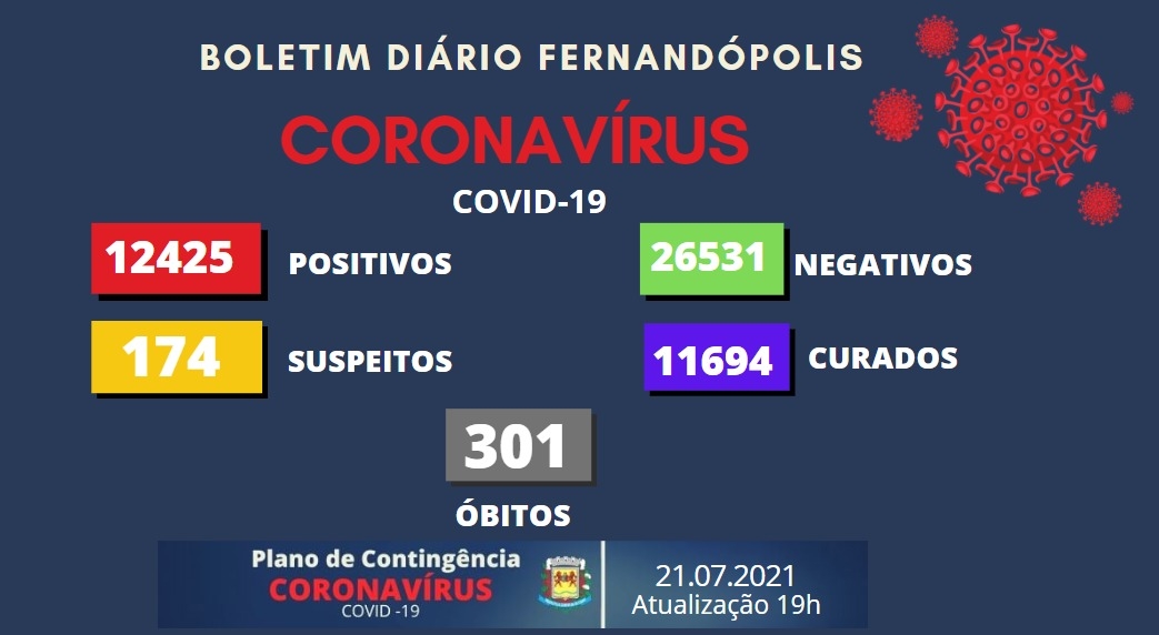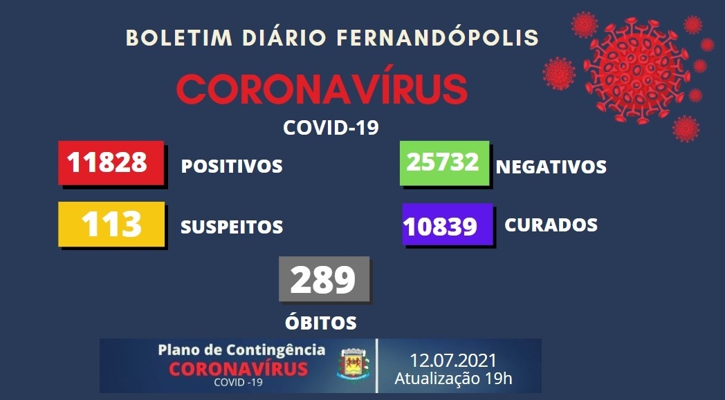 Fernandópolis atinge a triste marca de mais de 12 mil infectados por Covid-19, desde o início da pandemia