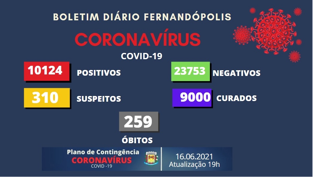 Fernandópolis não registra óbitos por Covid-19 nas últimas 24h, mas contabiliza 77 casos positivos