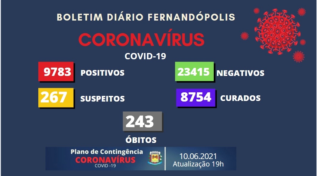 Fernandópolis registra um óbito por Covid-19 e 24 novos casos positivos