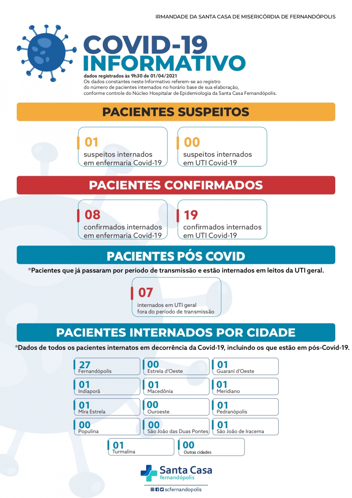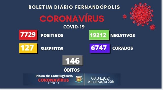 Fernandópolis termina março com 47 mortes e 1.659 casos positivos de Covid-19