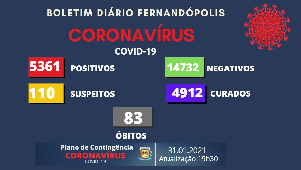 Fernandópolis registra a 80ª morte por Covid-19 e mais 53 casos positivos