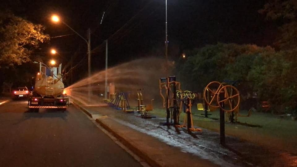 Em meio a escalada de novos casos de Covid-19, prefeitura desinfecta pontos estratégicos da cidade