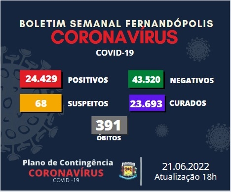 Boletim semanal da Covid-19 registra 221 novos casos positivos