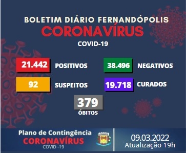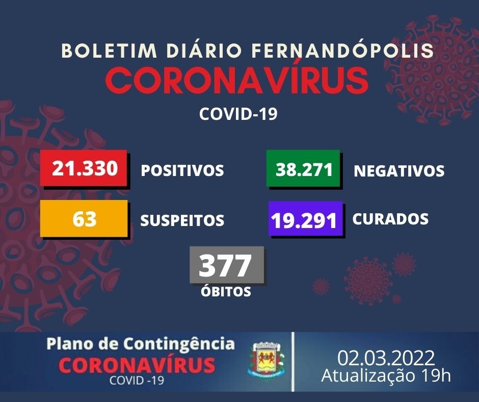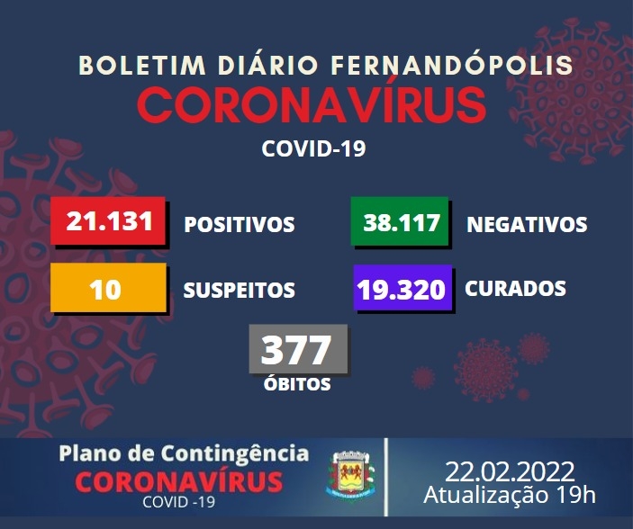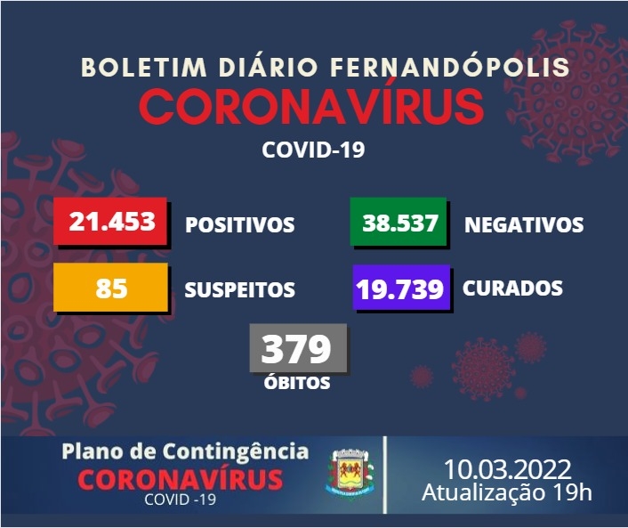 Boletim Covid-19 registra 10 novos casos positivos em Fernandópolis