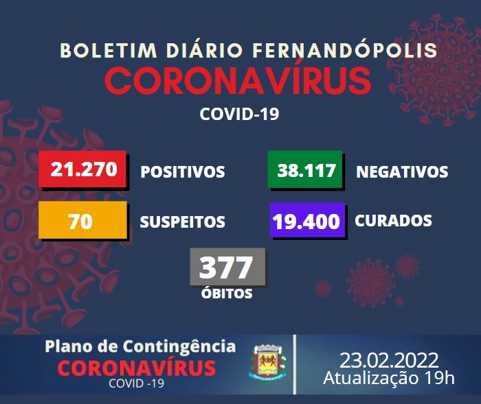 Fernandópolis registra 23 novos casos positivos de Covid-19