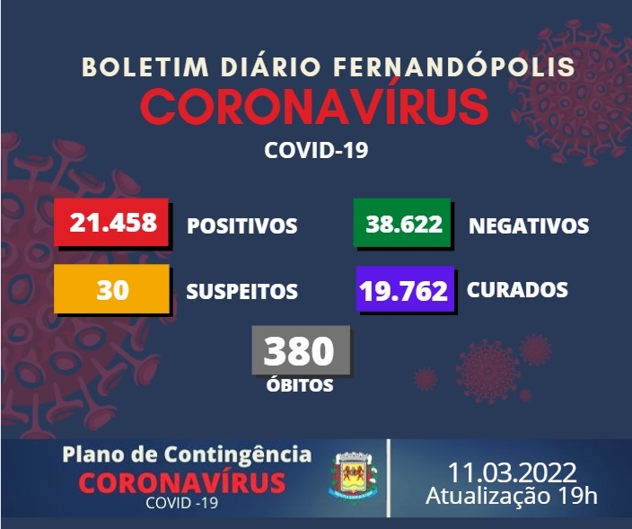 Fernandópolis registra 11 novos casos positivos de Covid-19