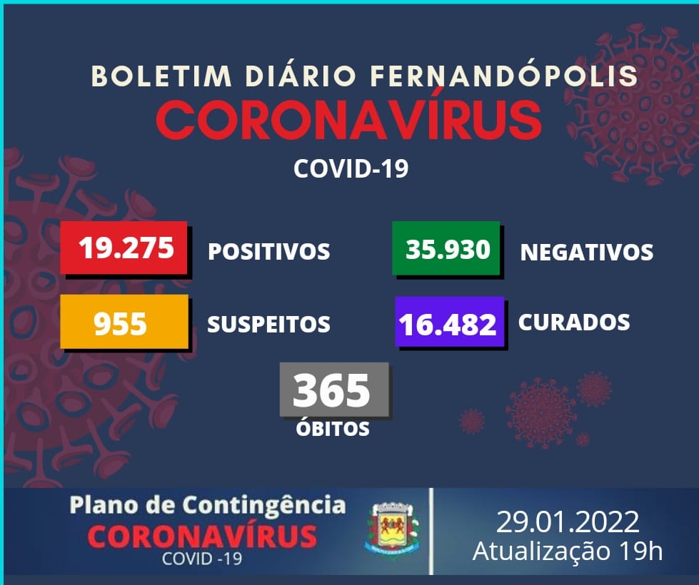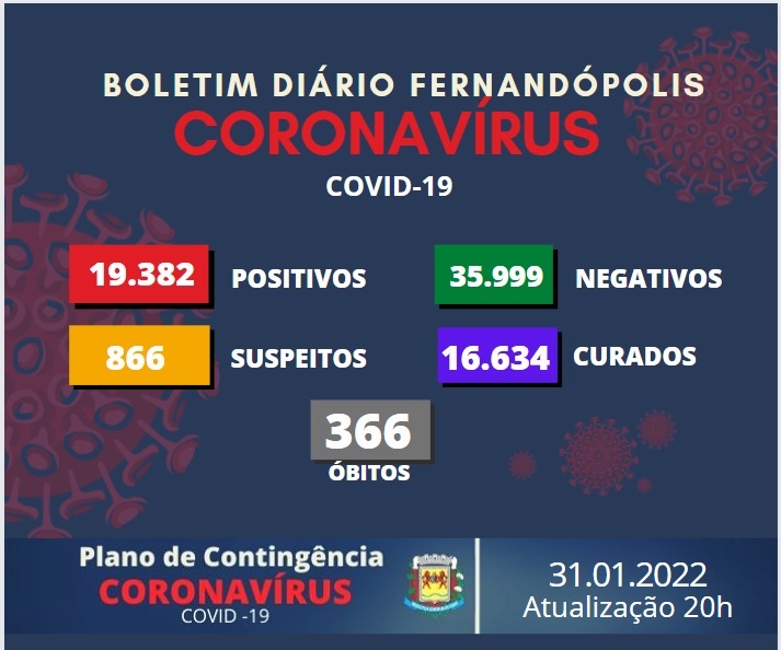 Sem óbitos, Fernandópolis registra 109 novos casos positivos de Covid-19
