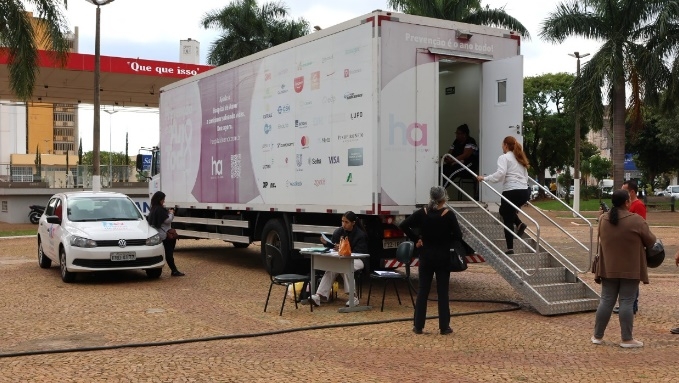 Carreta de Mamografia do Hospital de Amor atende mulheres na praça