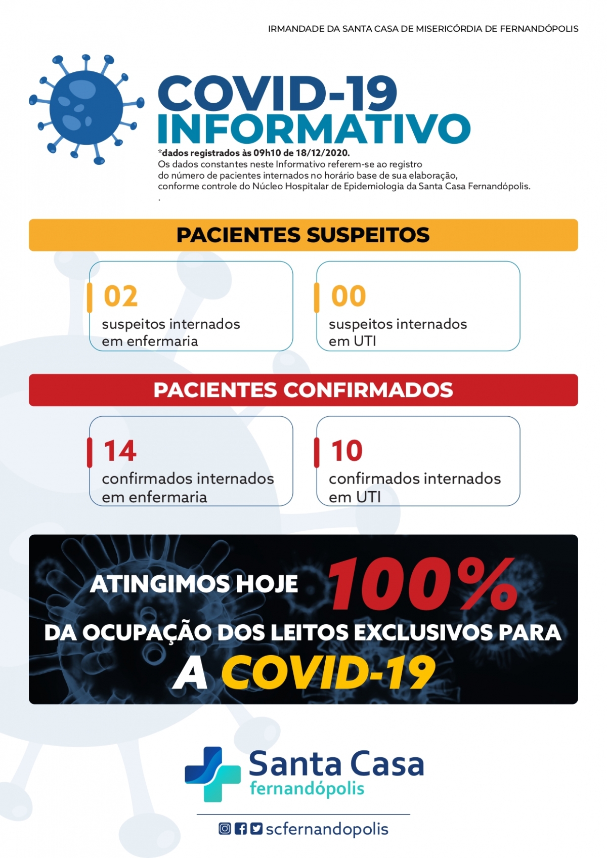 Número de pacientes internados na ala da Covid na Santa Casa cai de 22 para 15