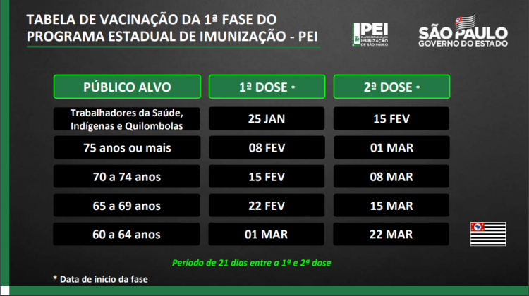 São Paulo anuncia vacinação contra a Covid a partir de 25 de janeiro