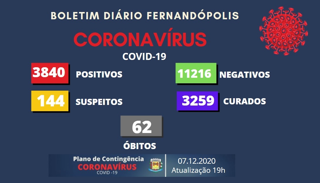 Fernandópolis registra mais 60 casos positivos de Covid-19