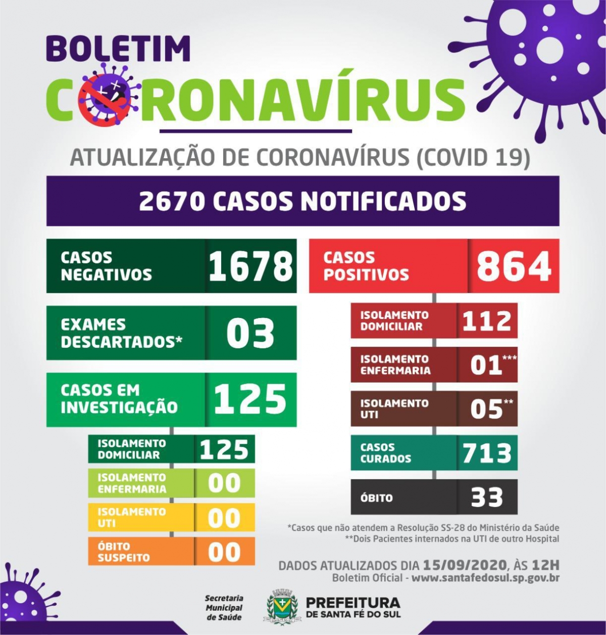Santa Fé do Sul registra a 33ª morte por coronavírus